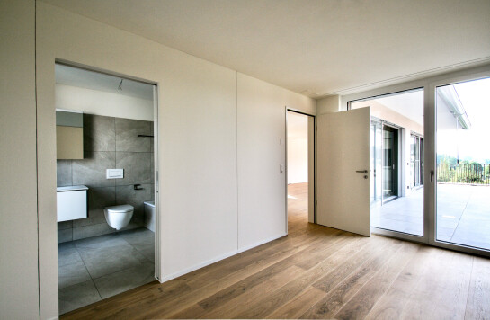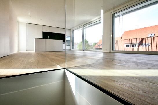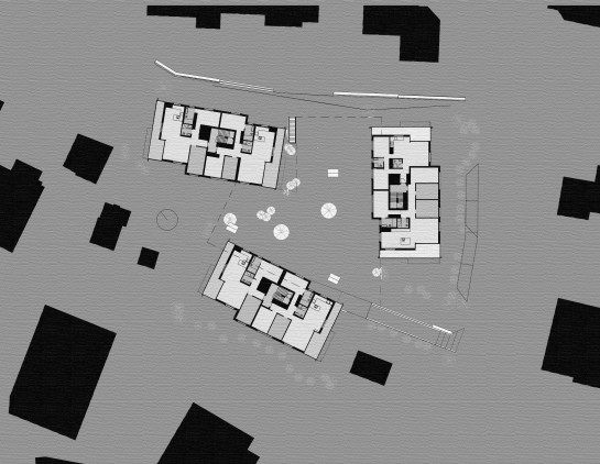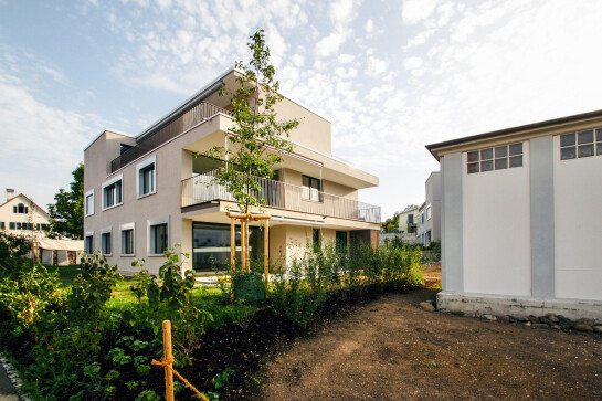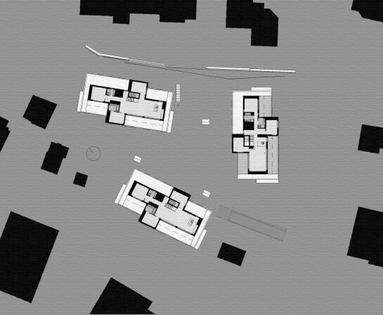 die drei modernen, zurückhaltend formulierten häuser sind auf der nach südwesten sanft abfallenden parzelle um einen dörflichen hof gruppiert. in direkter nachbarschaft zum alten dorfkern mit seinen klassischen verputzten bauernhäusern und den zugehörigen holzbeplankten wirtschaftsbauten liegend, reagieren die neubauten mit einer klassischen materialisierung; hell verputzter wohnteil auf einem sockel ruhend und stirnseitige, holzbeplankte schöpfe im erdgeschoss. Die drei baukörper sind geschickt gegenseitig versetzt zueinander angeordnet. aus allen wohnungen geht daher ein freier und schöner blick in die historisch gewachsene nachbarschaft und hin in richtung des alpenkamms.