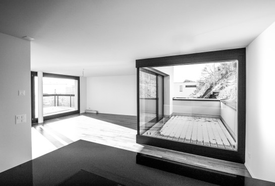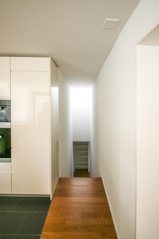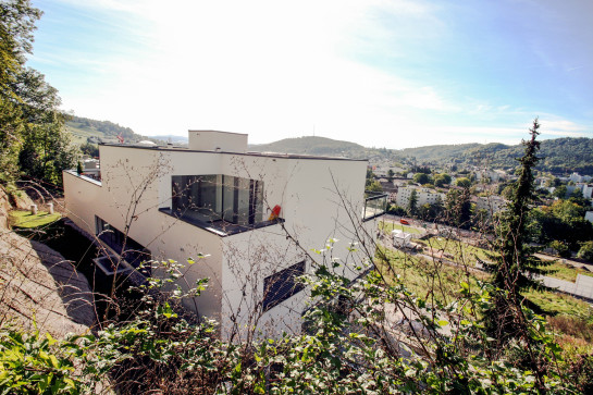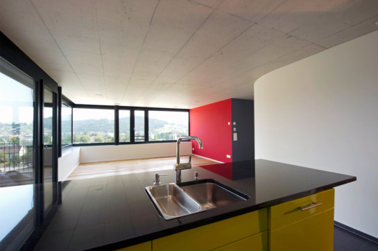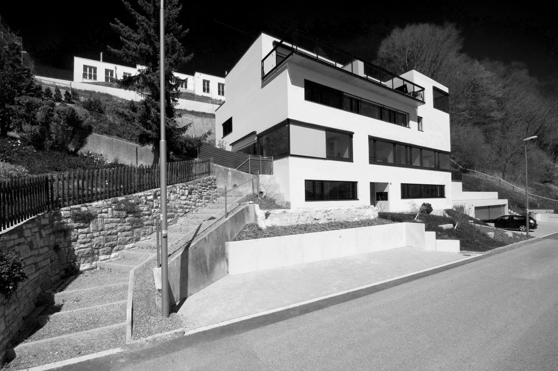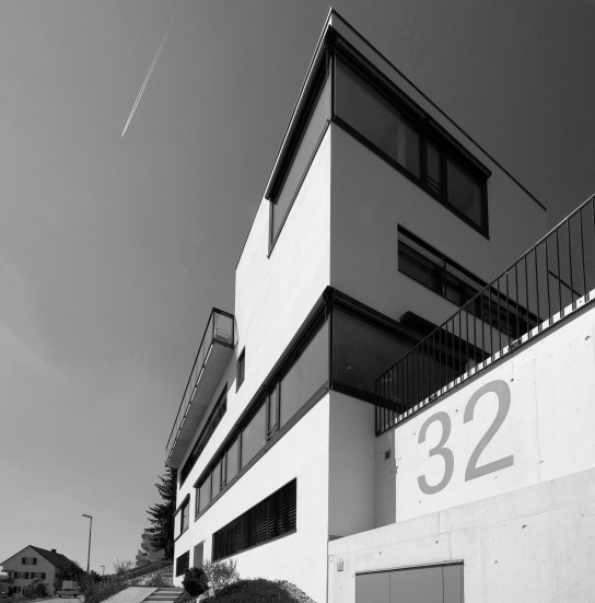 vier maisonette eigentumswohnungen stehen in einem steilen ehemaligen rebhang mit schöner aussicht über das winterthurer quartier wülflingen. die wohnräume liegen im jeweils oberen aussichtsreicheren geschoss, die schlafräume diagonal versetzt im unteren. dieser versatz führt dank dem raffinierten ineinandergreifen der wohnungstreppen mit dem öffentlichen treppenhaus dazu, dass alle wohnungen vierseitig orientiert werden können. drei der vier wohnungen verfügen als besonderheit über eine wohnungsinterne liftverbindung und sind behinderten- und altersgerecht ausgebaut.