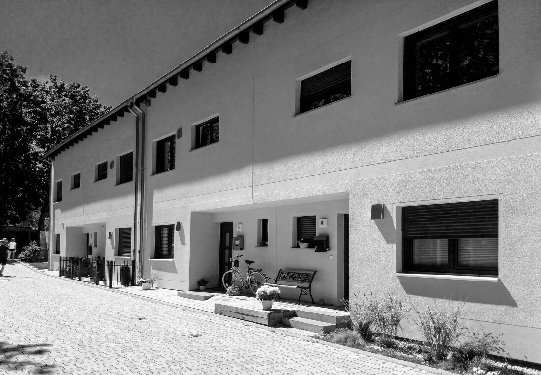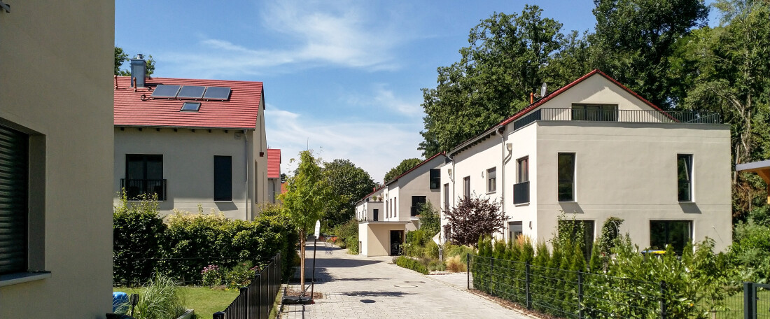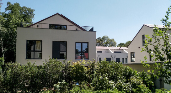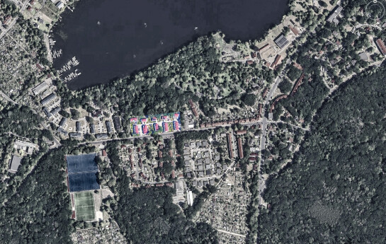 in diese gartenstadt platzieren wir 10 häuser in einer kammartigen, offenen struktur. das grün des unmittelbar angrenzenden waldes wird in die gartensiedlung hinein geführt, wo es private Gärten bildet.