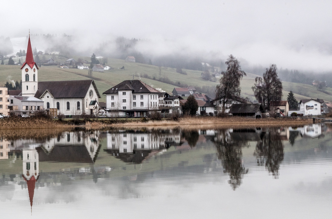 häuser mit bootshaus und badeplatz am sihlsee